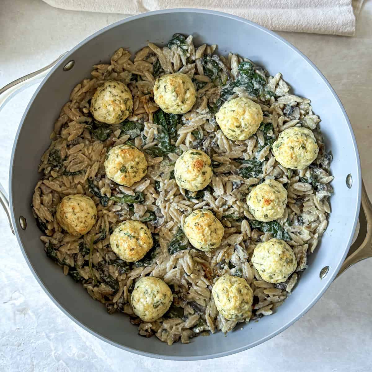 Once you have a batch cooked, you can serve them in so many different ways. With pasta and tomato sauce or green pasta sauce, as part of a Fall Sheet Pan Gnocchi Dinner, or with a Creamy Parmesan Orzo with Fresh Spinach & Mushrooms that is made without heavy cream, but still has a delicious creamy texture.