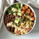 Sweet potatoes are one of my favorite ways to add complex carbs to my plate. I love making Air Fryer Sweet Potatoes and adding them to scrambled eggs with spinach or on top of a salad. You could also make a Mediterranean Bowl with a Quinoa Salad, 4 Ingredient Oatmeal Cookies, or homemade Hemp Granola to add to greek yogurt for a snack.
